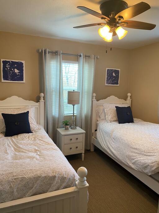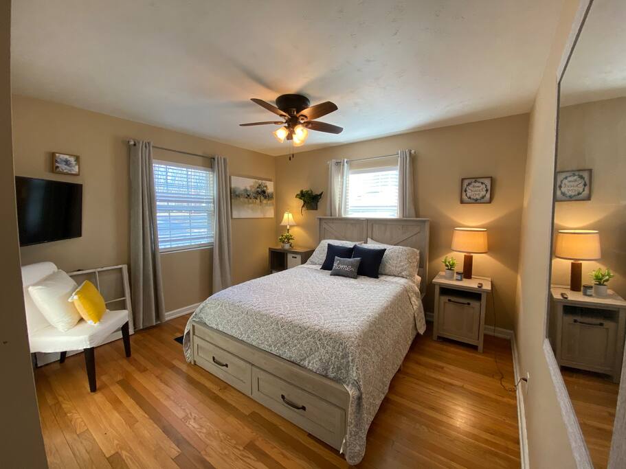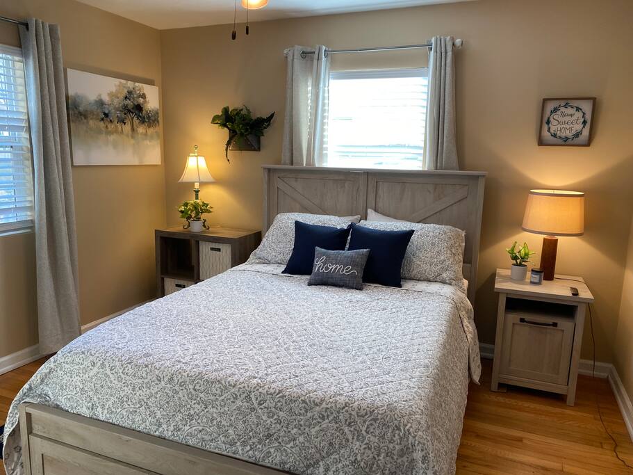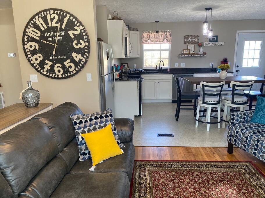 We absolutely love this house- it is a charming home situated on an acre in the heart of just about everything- The interior of the home has been updated to accommodate small families and people with special needs- we have made this space “home” for all who are guests- Open floor plan concept with 2 bedrooms and 1 bath- Each of the rooms were designed with the ease of just feeling comfortable when you walk in- plenty of pillows and blankets for guests to use with plenty of places to sit and relax- The living room has 1 recliner chair / 1 sofa/ sleeper and 1 accent chair- There is a sofa table with chairs to sit and conduct business - TV’s w/ WiFi capabilities in each bedroom and Living room- Each bedroom has a phone charging station as well as a bed side lamp- Dining room / kitchen is set up for seating up to 6- The kitchen has all the amenities you will need to prepare a meal for your family- pots/ pans/ cooking utensils/ silverware/ glassware/ plates/ bowls and much more- We also provide olive oil, salt & pepper, some cooking spices, sugar, coffee, tea & coffee maker. A gas Weber BBQ Grill is provided to guests (please read and follow instructions before use) You will have comfortable linens on each of the beds/ mattress protectors as well as a blanket & quilt all the pillows have allergy safe pillow protectors on them. The bath towels are large and luxurious- Some toiletries will be provided- (shampoo/ conditioner, soap, hair dryer) Washer and dryer -(with 2 complimentary detergent pods) The home is accessible by wheel chairs, however there is 1 step from the driveway to the home. The shower is accessible for people with special needs with a very small lip on the shower edge- We also can accommodate to families with babies/ children- we have a portable crib, high chair and baby bath available in addition to games, books, toys & non- breakable plates/ bowls/ cups- When booking with us please let us know if you need us to set up these items for you. This home was built in the (1950’s) - we have kept the original hardwood floors throughout the bedrooms/ living area and hallway- due to this the floors do creak from time to time- The air conditioner / heating unit is located below the home - guests can here it when it turns on/off- The house is located on the Main Street to Bays Mountain - during certain times of the day the street can get busy with traffic- The driveway is a circular gravel driveway- with a large tree on the road side -there is plenty of space to park - just be careful if you back up!!!